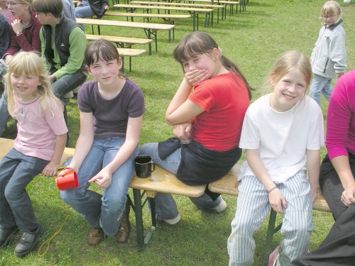 Am nächsten Tag stand nach einem kräftigen Frühstück ein Stationsspiel mit Hufeisenwerfen, Schlauchbootfahren und einem Erste-Hilfe-Test, unterstützt vom Jugendrotkreuz Zersen, auf dem Programm. Außerdem konnten sich die Kinder beim Ballspielen austoben, bevor am Nachmittag zum Kaffeetrinken die Eltern anreisten. Sie hatten Mühe, ihre Kinder wieder mit nach Hause zu nehmen, so gut hatte es den Mädchen und Jungen gefallen.