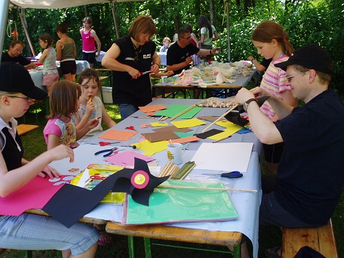 strahlendem Sonnenschein für die Kinder in die kühlen Fluten ging, standen Bastelarbeiten auf dem