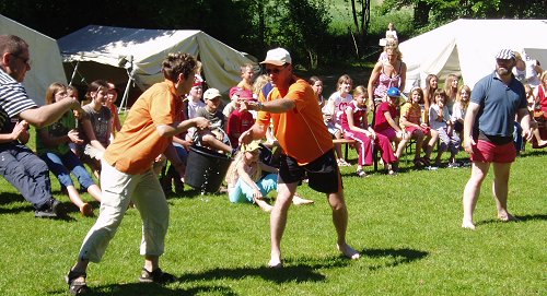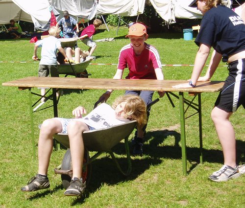 Teebeutelweitwurf und vor allem dem Schubkarrenrennen war beim fröhlichen Kräftemessen