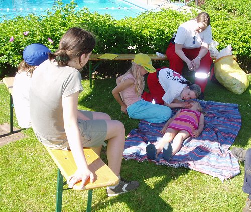 Unterstützung bekamen die Betreuer der DLRG beim Stationsspiel vom Roten Kreuz. Hier lernten