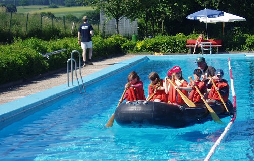 Jahren die Schlauchboottour im Schwimmbecken.