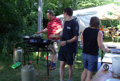 Während die Kinder die Tage in vollen Zügen genießen, gibt es für die beiden Köchinnen Rita Wolter und Birgit Diekmann viel zu tun. Immerhin müssen fast 70 hungrige Mäuler gestopft werden. Nudeln am ersten und Kartoffelpuffer am zweiten Tag standen auf dem Küchenplan. Am Sonntag nach dem Frühstück bilden sich Gruppen, die beim Stationsspiel gegeneinander antreten. Die 'wild Girls' siegten übrigens. Am Nachmittag kommen die Eltern, sie bringen leckeren Kuchen zum gemeinsamen Kaffeetrinken mit.