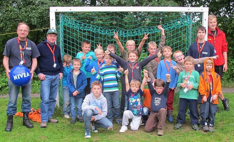 Dank an Markus Weber für Holzspende, an die Feuerwehr Pötzen für Materialleihe und an Stefan Kolbe und Mirko Diekmann für die Mithilfe, Rene Schnurbusch für Medienunterstützung, Holger Schönrock für die Teichbesichtigung, Jürgen Schaper für Fotoshooting und den Herren Hundertmark und Meyer vom DRK für die 1. Hilfe Station. Dank auch an einige Eltern, die beim Abbau noch kurz mit anpacken konnten.