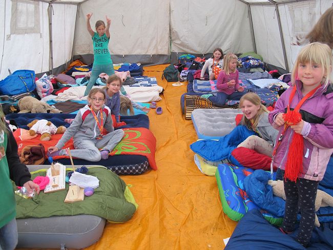 9 - 18 Teilnehmer (je nach Zeltgröße) schlafen zusammen mit einem Betreuer in